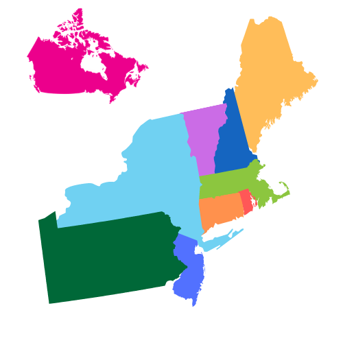 Eastern Canada, Maine, New Hampshire, Vermont, Massachusetts, Rhode Island, Connecticut, New York, New Jersey, Pennsylvania, Delaware, Maryland, Virgnia and Washington D.C. We are proud to be a central part of the highly unique and productive regional cleantech ecosystem: we work with partners all over our two regions to support the growth of innovative startups coming out of our tremendous research institutions and the business community.